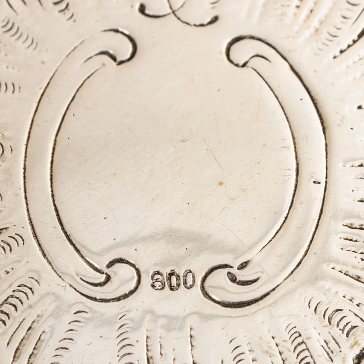 800/Firmenzeichen/Halbmond/Krone gepunzt, mit Zusatz "Handarbeit". Um 1920. Deutschland.
