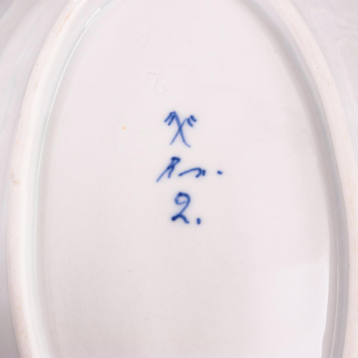 Unterglasurblaue, ausgetuschte Strohblumenmalerei.