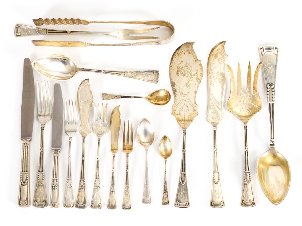 Umfangreiches Jugendstil-Silberbesteck für 12 Personen.
