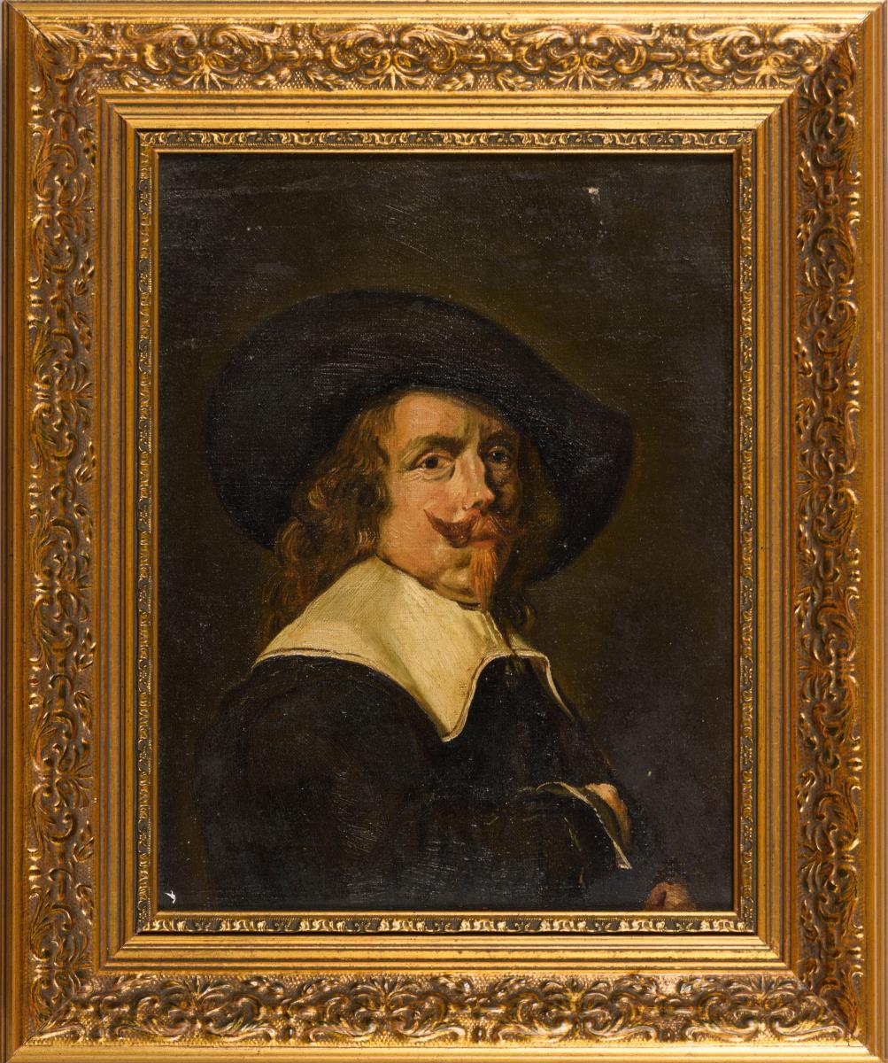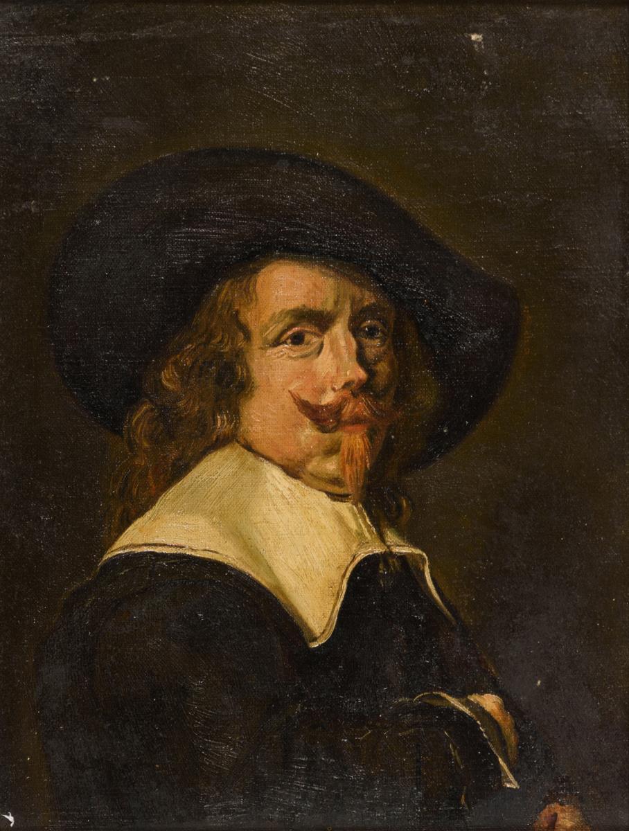 Bildnis eines Mannes in holländischer Kleidung des 17. Jahrhunderts vor neutralem Hintergrund. Altersspuren.