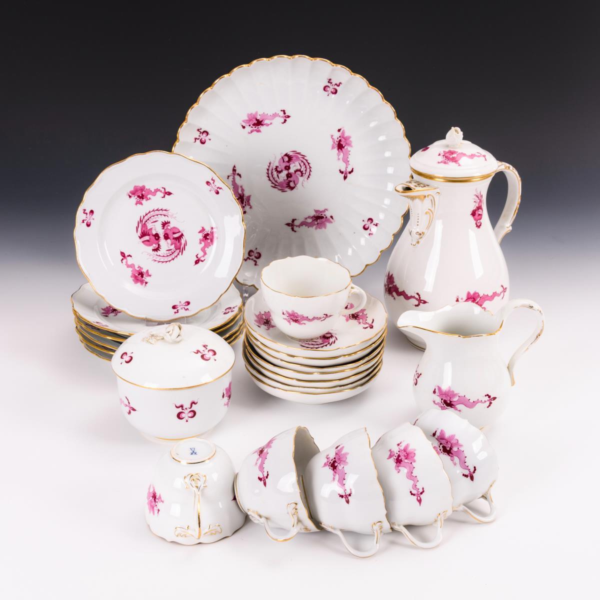 Kaffeeservice mit Drachendekor. Meissen.