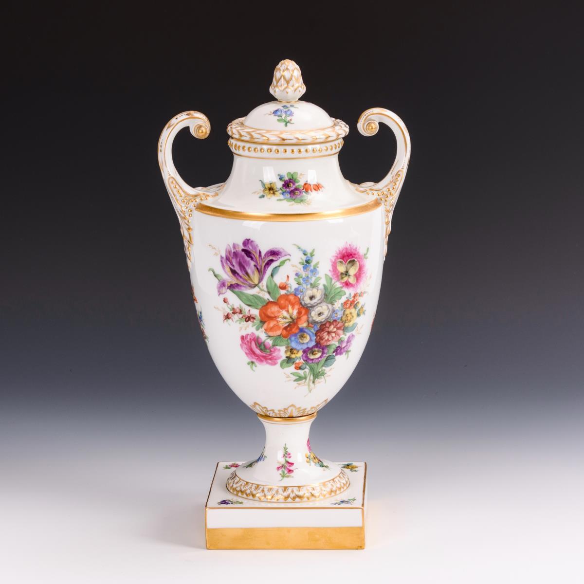 Deckelvase mit Blumenmalerei. Fürstenberg.