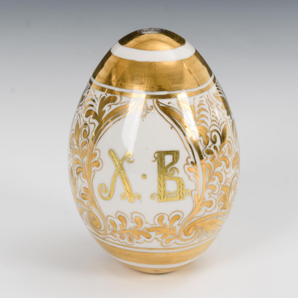 Osterei mit Christusdarstellung und reicher Goldmalerei.