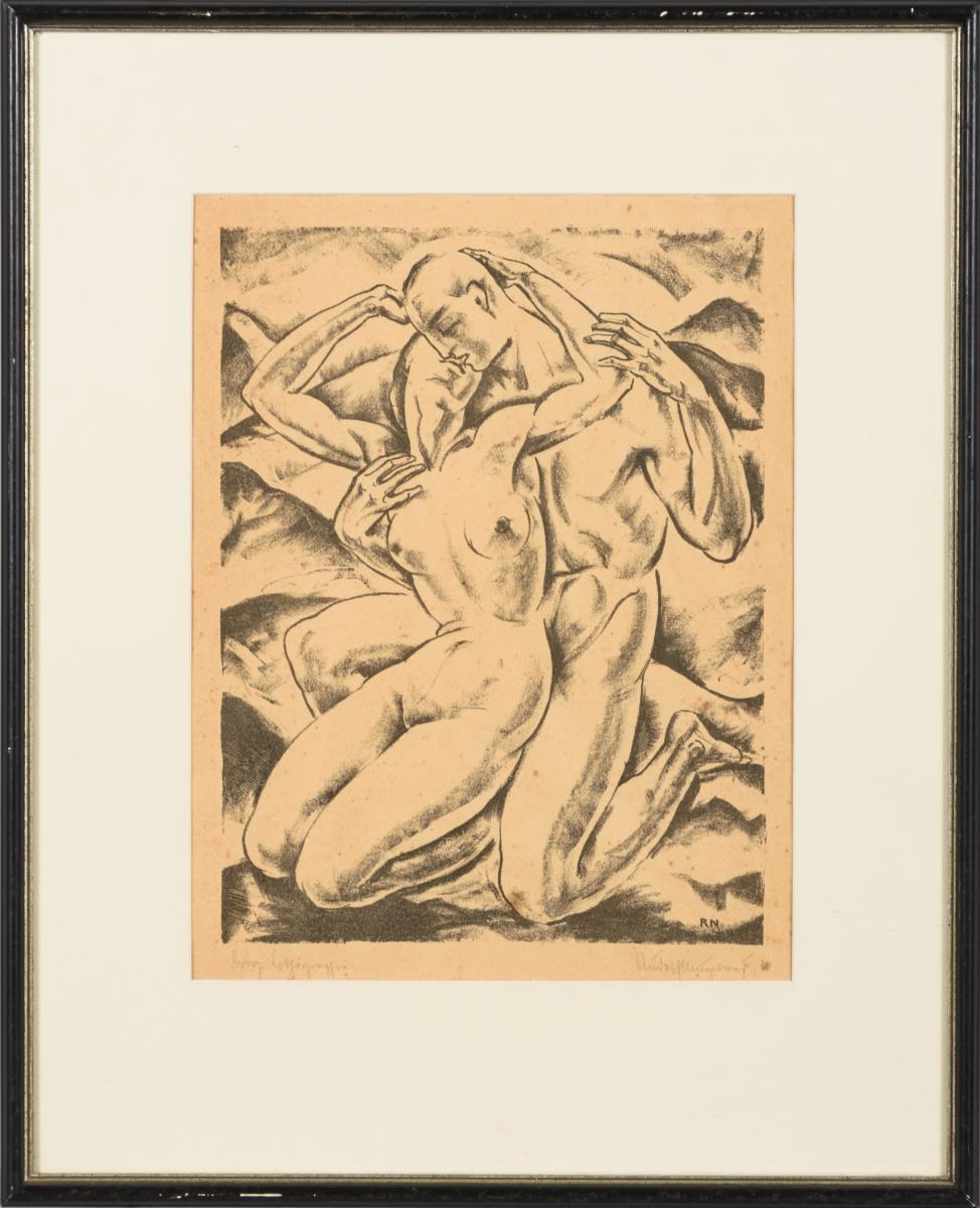 Eng umschlungenes Liebespaar. Etwas stockfleckig.