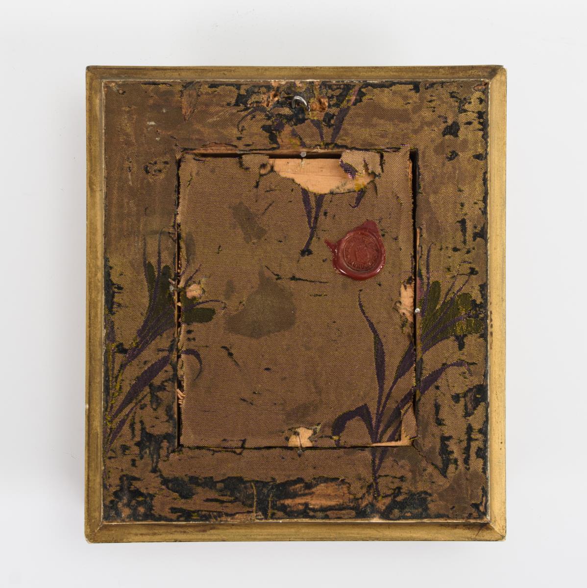 Wohl Tempera/Elfenbein über Vordruck, verglaster Goldstuckrahmen, verso Zollstempel "K.B.H.Z.A. München". 8 x 6,5 cm, Rahmen 15 x 13,5 cm.