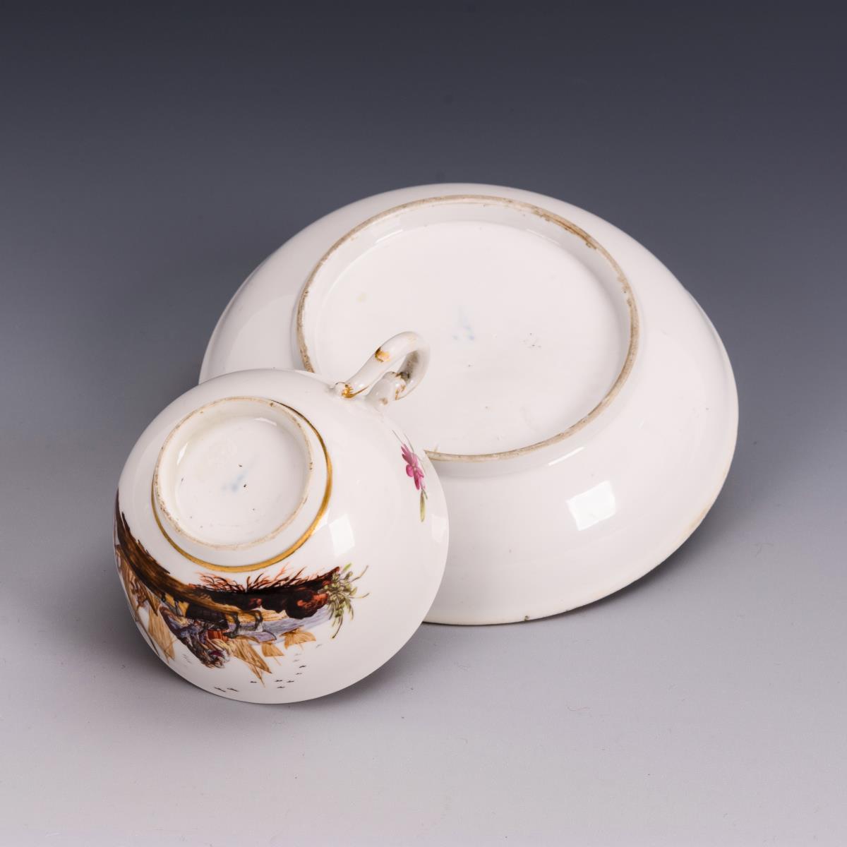 Tasse und Untertasse mit Kauffahrteimalerei. Ansbach.
