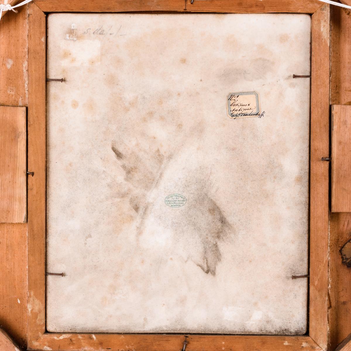 Polychrome Malerei. 32 x 26 cm, im Goldstuckrahmen 51,5 x 46,5 cm.