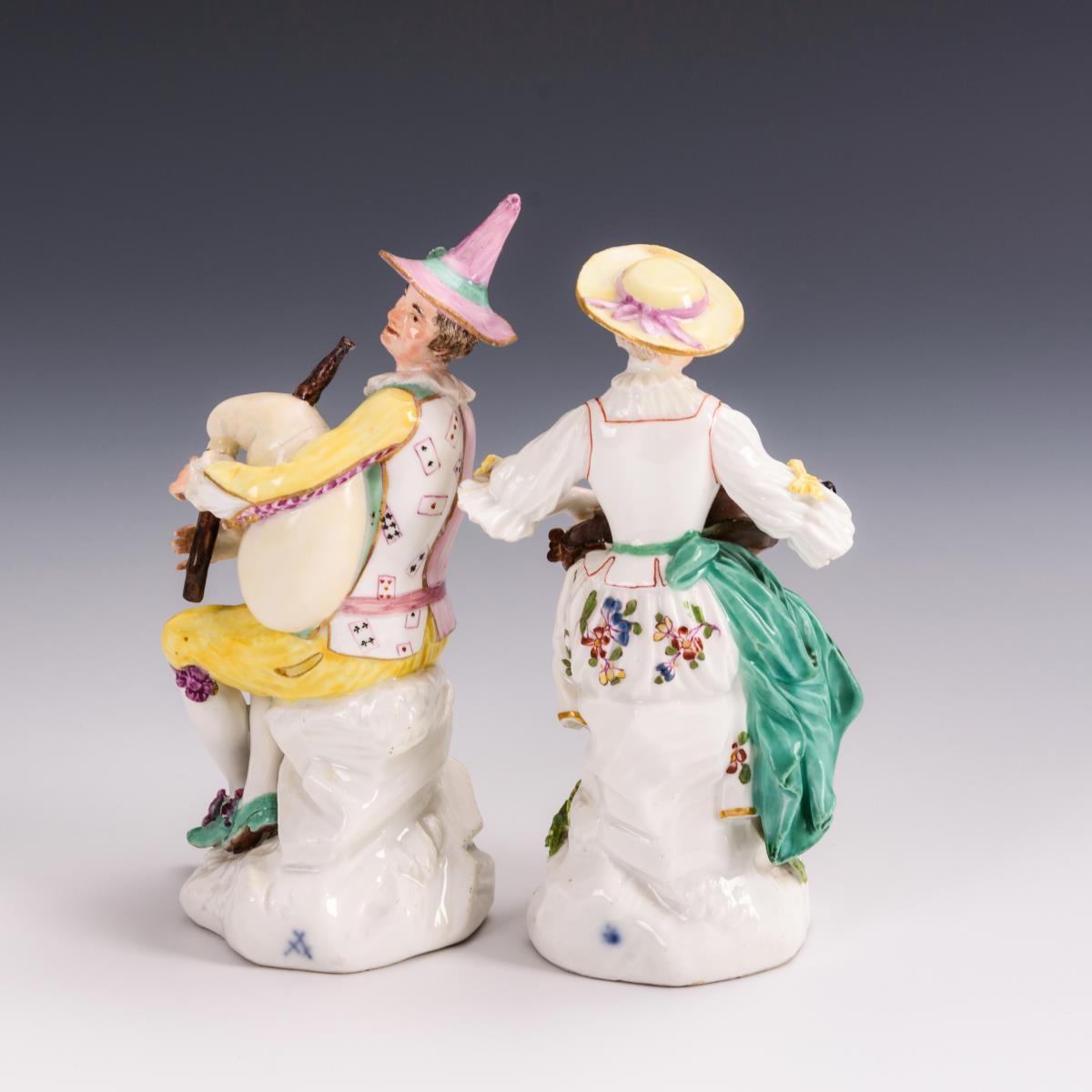 Mädchen mit Drehleier und Harlekin mit Dudelsack. Meissen.