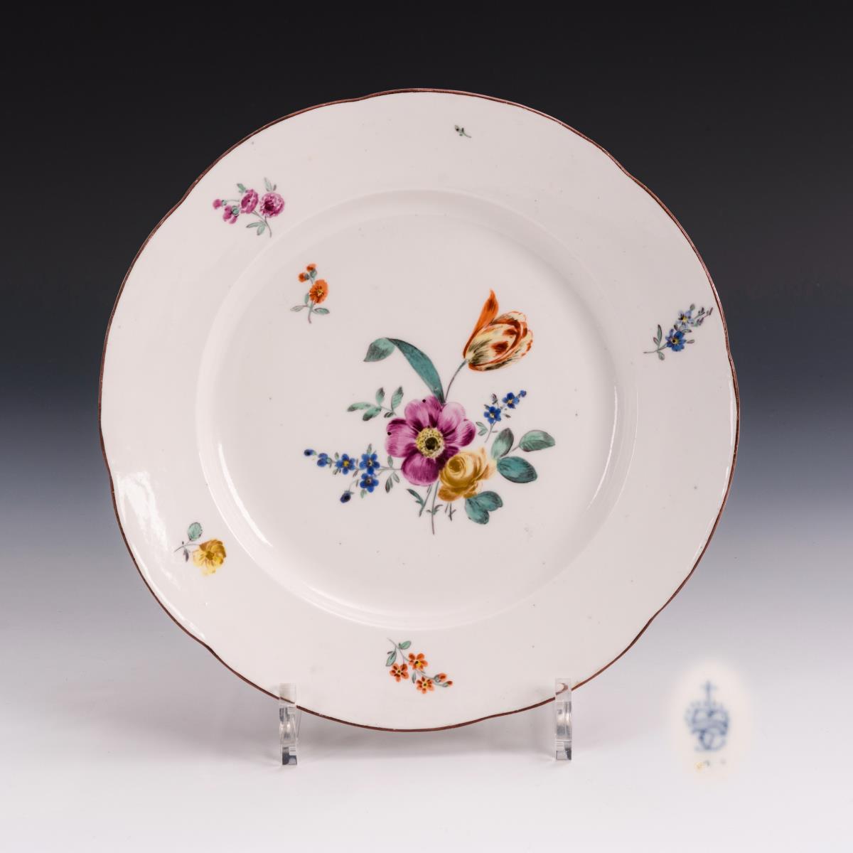 Barocker Teller mit Blumenmalerei. Frankenthal.
