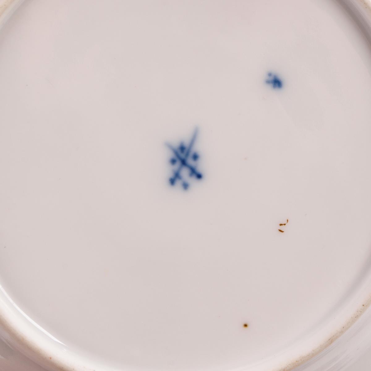 Unterglasurblau bemalt, rot und gold gehöht. Ø 20 cm.