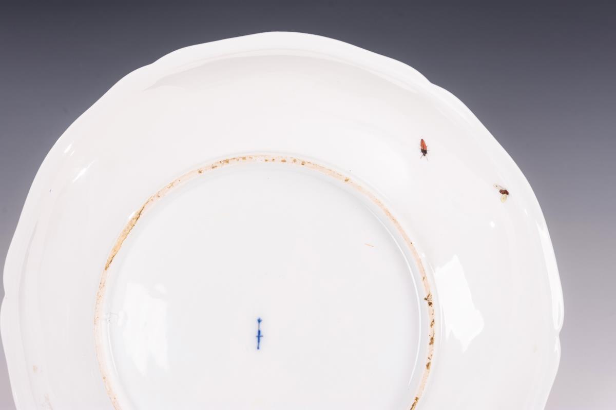 Sechspassschale, im Spiegel ein Vogel auf einem Früchtezweig. Gold etwas berieben, restauriert.