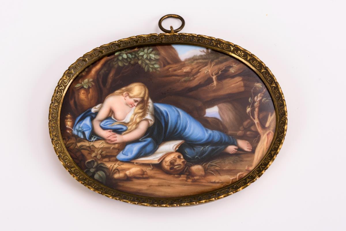 Kleines Porzellangemälde: Heilige Magdalena. Meissen.