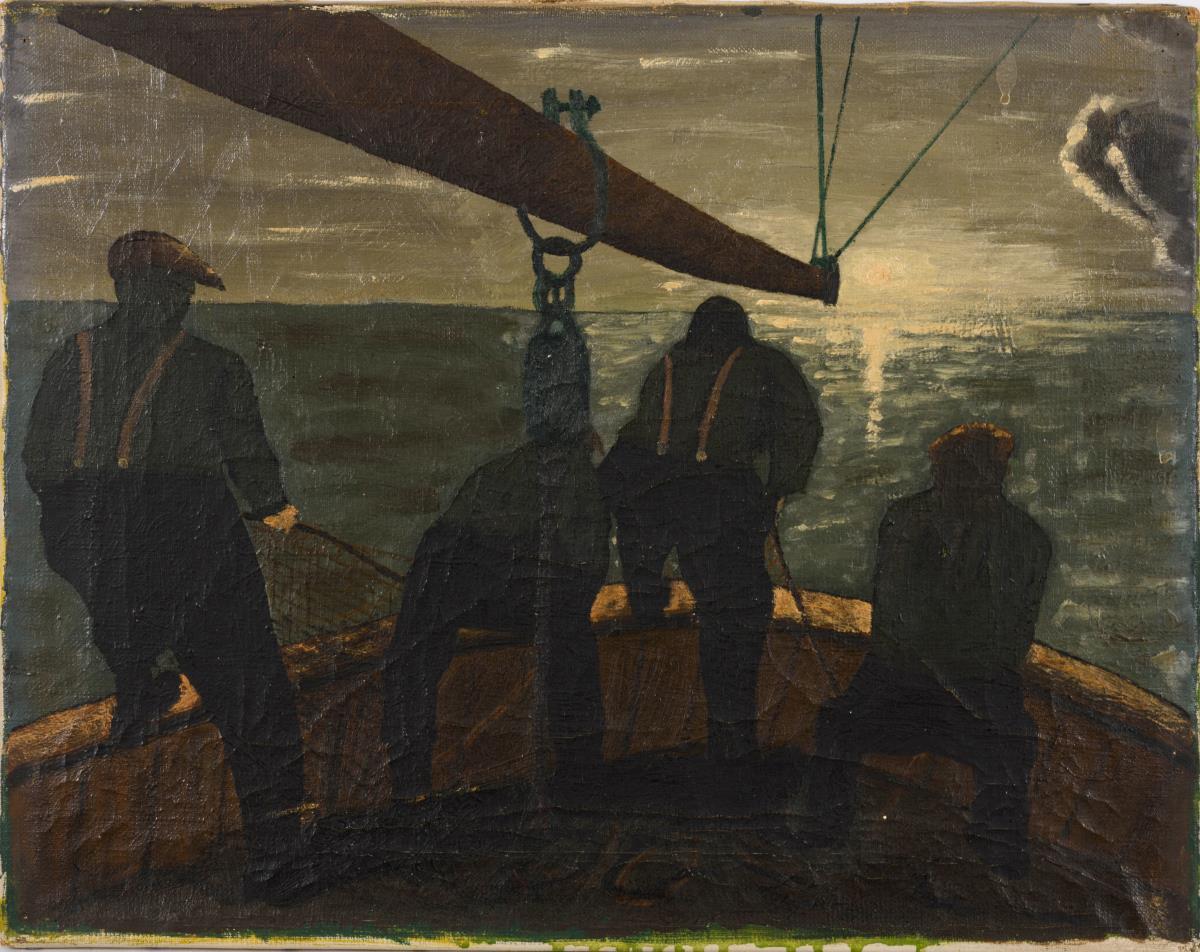 Unsigniert: Fischer beim Einholen der Netze