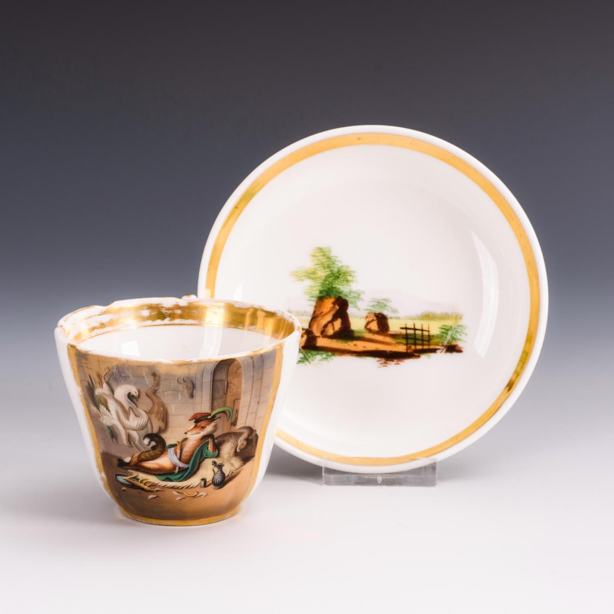 Tasse mit Fabelmotiv. Gotha.