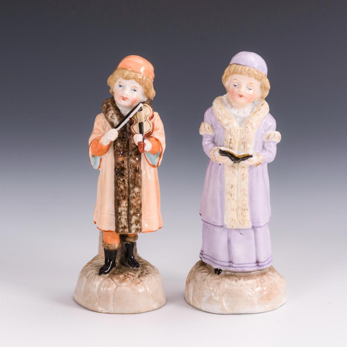 Polychrom bemalt. H 13 cm. Violinespielender Knabe und singendes Mädchen.