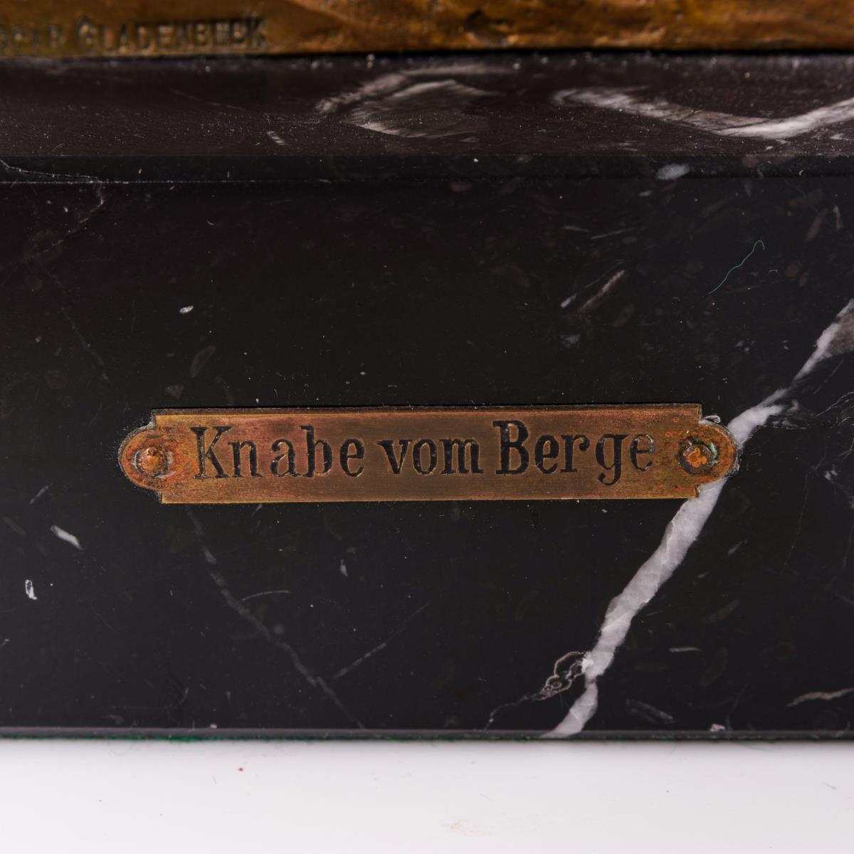 Bronze patiniert, schwarzer Marmor-Sockel. Bezeichnet, Gießermarke "Oscar Gladenbeck", auf dem Sockel betitelt. H 28,5 / 32,5 cm.