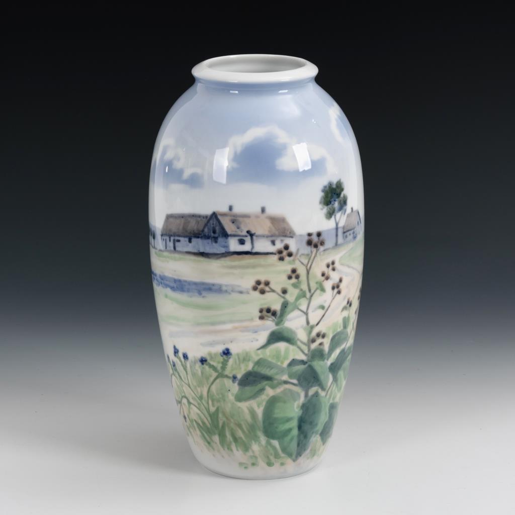 Balustervase mit der Darstellung einer Küstenlandschaft mit Gehöft.