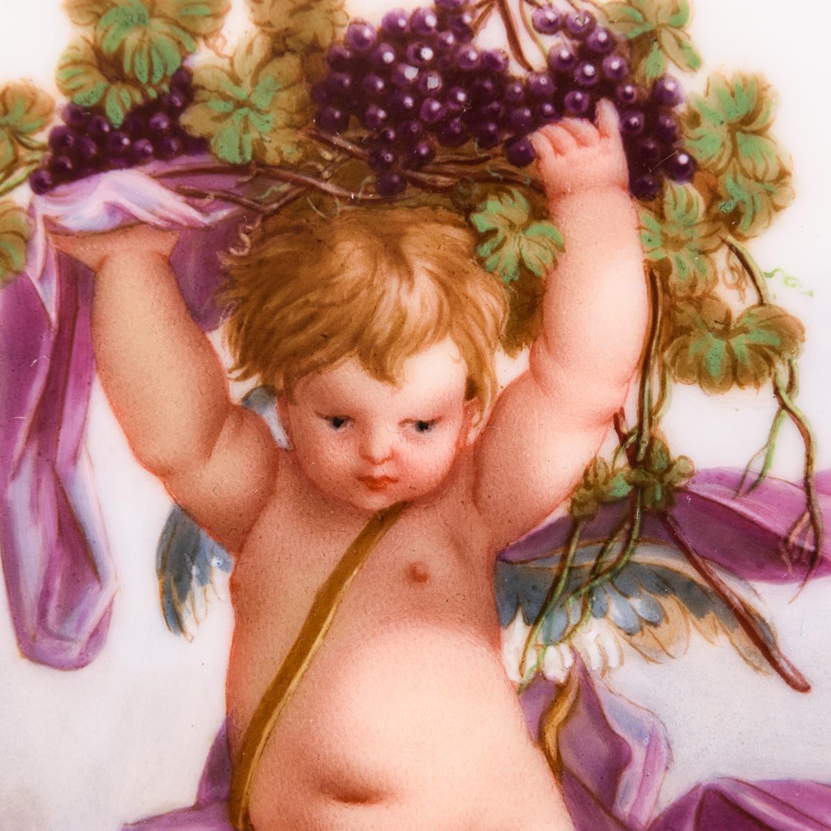 Plakette mit Puttenmalerei.