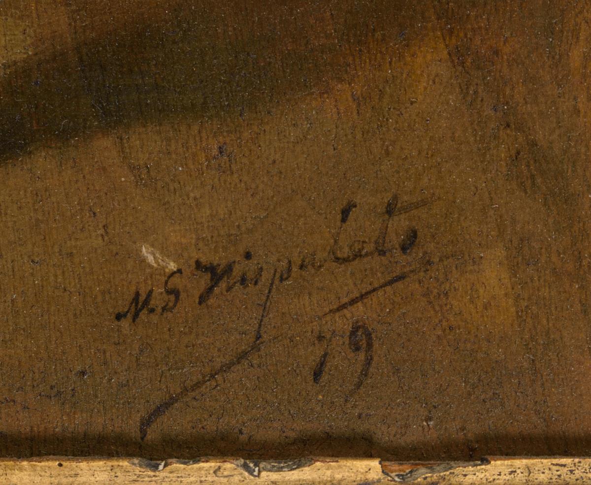 Öl/Holz. Rechts unten signiert. Datiert: (18)79.