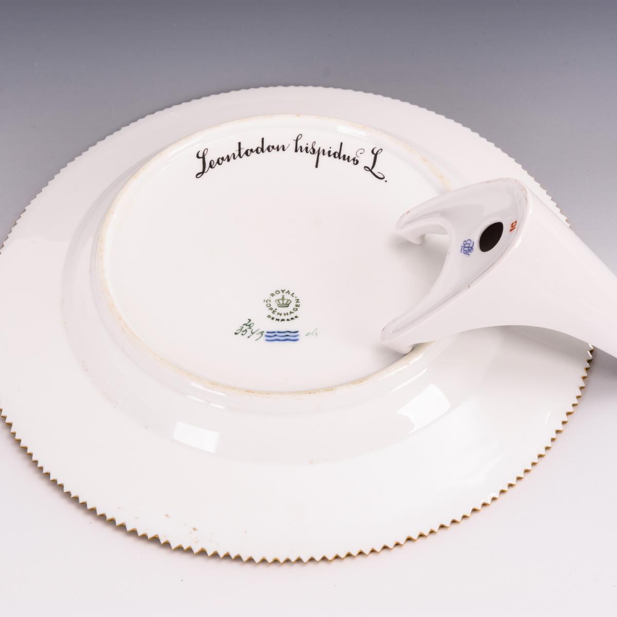 Teller mit Zackenrand. Im Spiegel die Darstellung einer Löwenzahnpflanze. Als Zugabe 1 Porzellan-Tellerständer der russischen Manufaktur Lomonossow. 1 Zacke bestoßen.