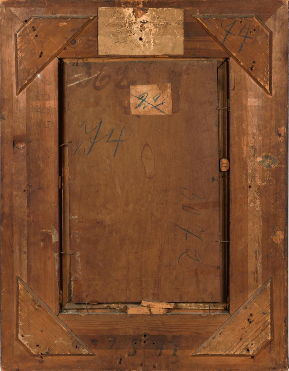 Öl/Holz. Links unten signiert, verso auf altem Zettel Fragmente einer Bezeichnung und wohl eines Titels.