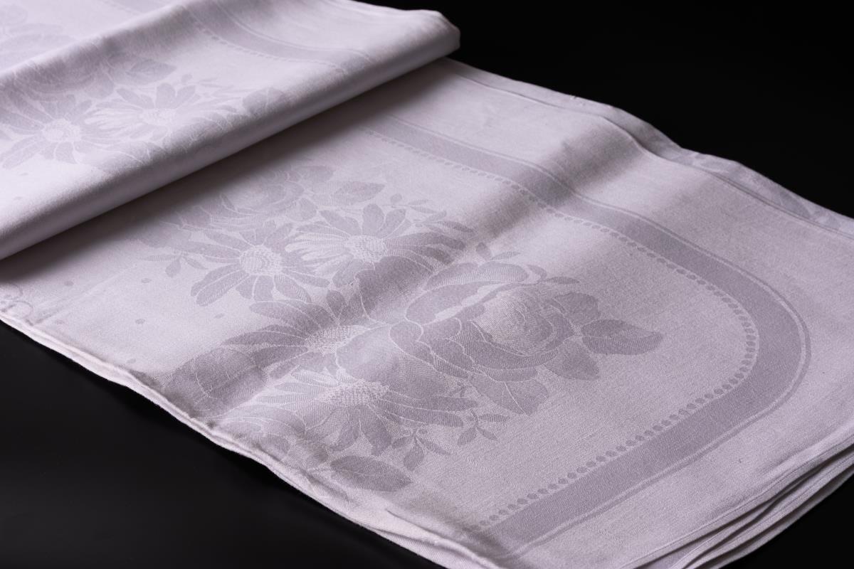 Leinendamast. 320 x 160 cm.