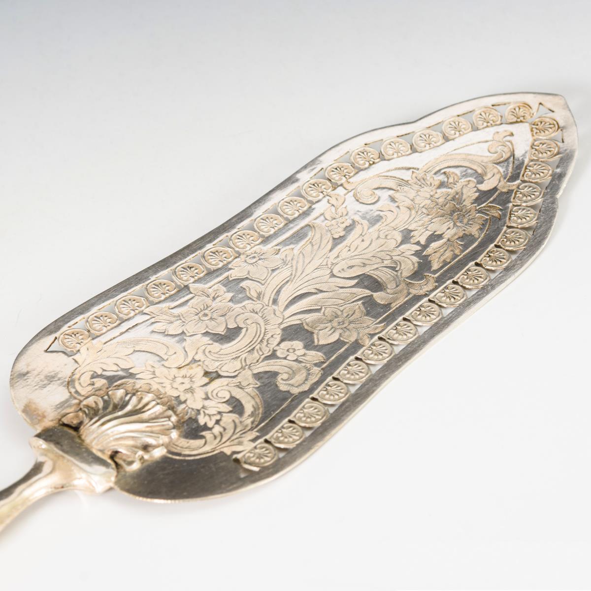 Pastetenheber, 2 Tortenheber, Vorlegegabel mit reicher Reliefierung, 1 Kelle, Salatbesteck und Vorlegelöffel mit vergoldeter Laffe.