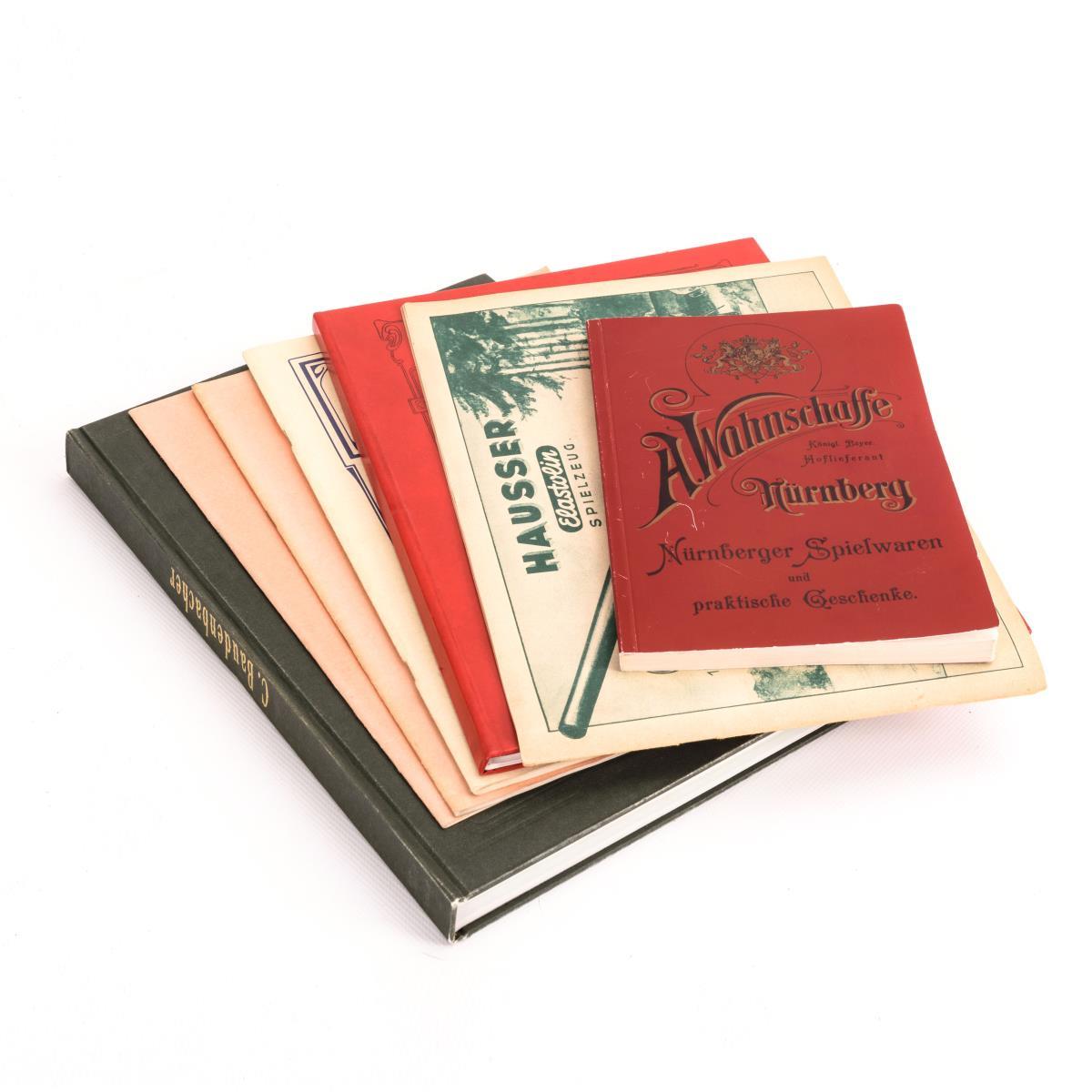 Vorwiegend Reprints von alten Katalogen. 3x Kibri: "Katalog Nr. 32" (2x) und "Musterbuch No. 4". / Ernst Plank "Katalog-Ausgabe 1903". / A. Wahnschaffe "Nürnberger Spielwaren um 1895". / C. Baudenbacher "Erste Nürnberger Holzspielwarenfabrik", Firmengeschichte und kommentiertes Musterbuch. / Originalkatalog Hausser "Elastolin Spielzeug 1939-40".