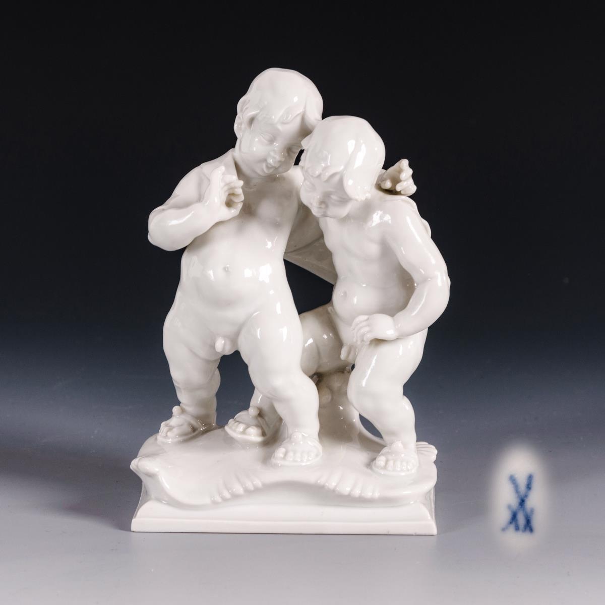Puttenpaar mit Umhang. Kleiner Brandriss an 1 kleinen Finger.