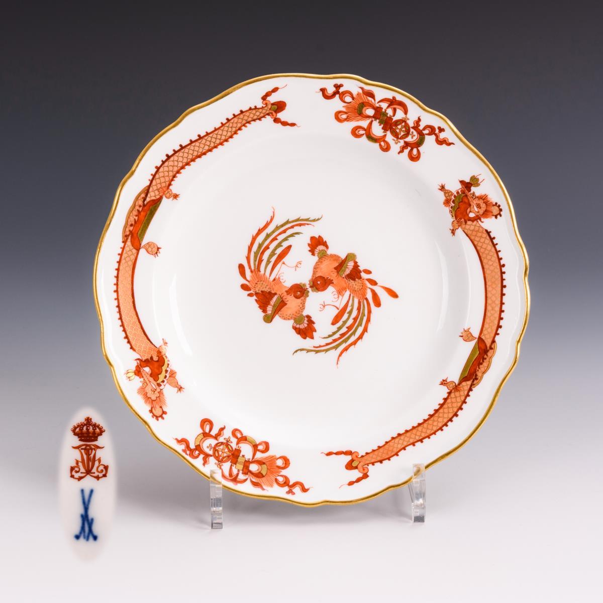 Teller "Roter Hofdrache" mit Besitzermonogramm. Meissen.