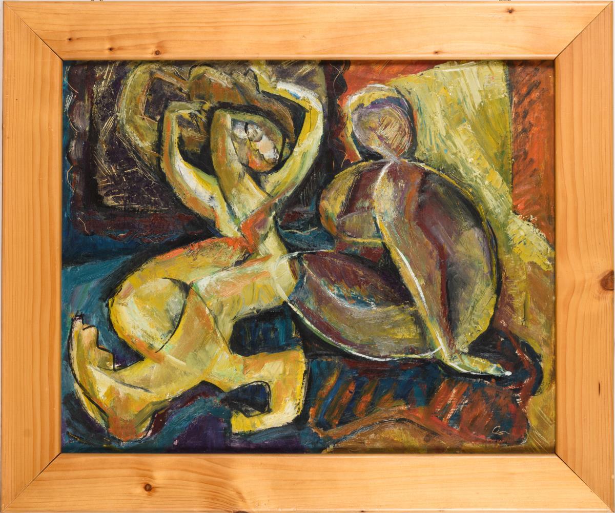 Sie befinden sich hier: Startseite Kategorien Gemälde(Modern) Monogrammist: Abstrakte Szene mit Sitzenden