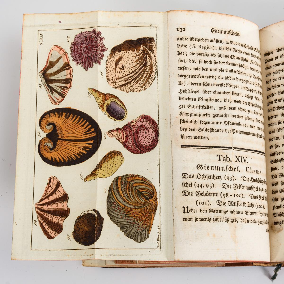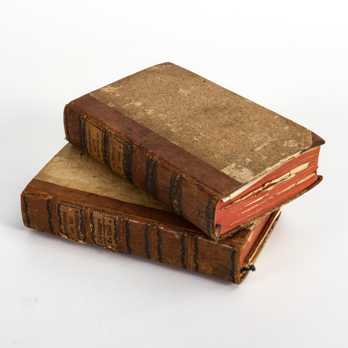 1. und 2. Theil. Titelkupfer, 28, 404 Seiten und 31 farbige Tafeln / Titelkupfer, (4), 468, (19) Seiten und 36 farbige Tafeln. Halbledereinband. Stärkere Gebrauchsspuren.