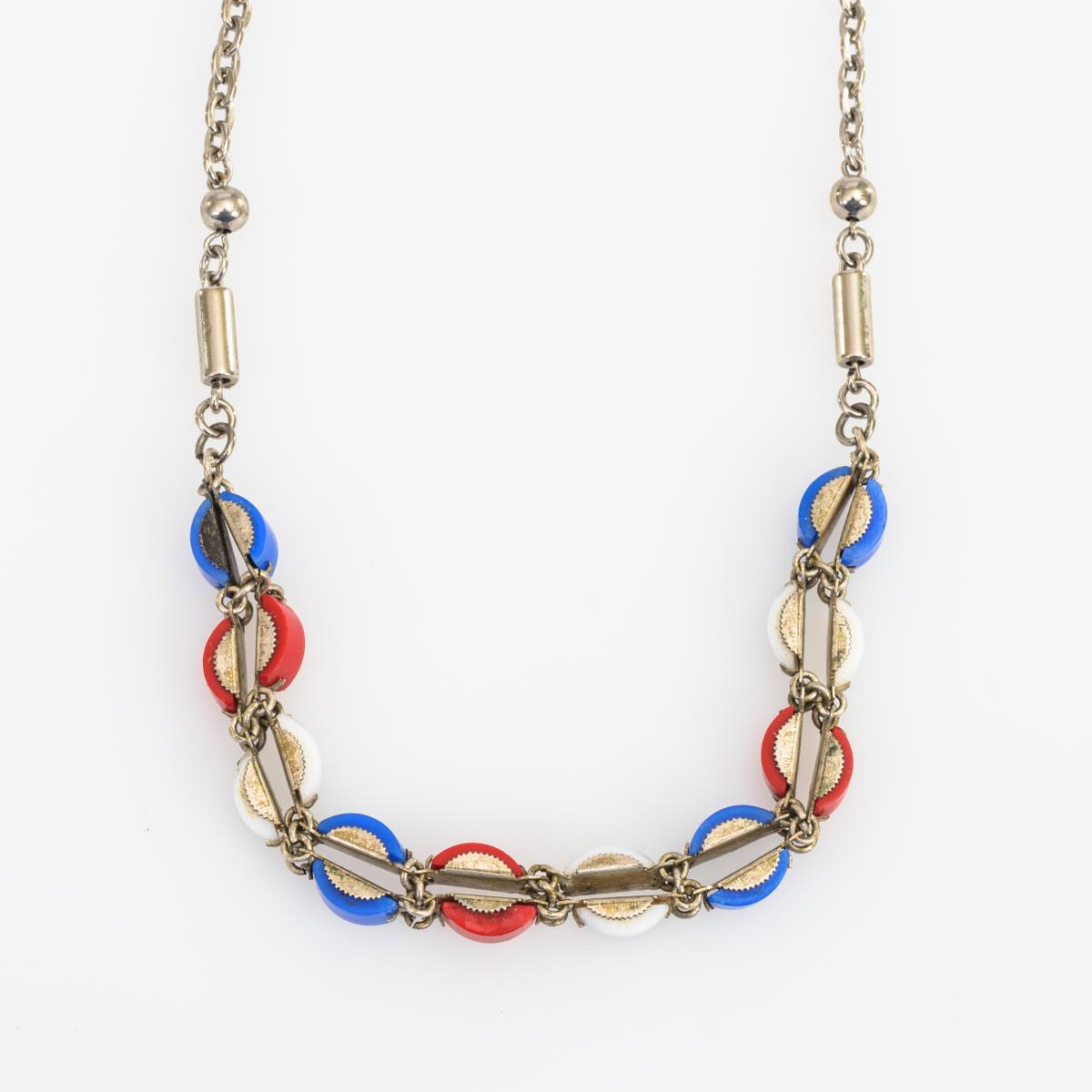 Verschiedenfarbige, gefasste Kunststoffsegmente, zwischen Ankerkette mit Ringfederschließe.