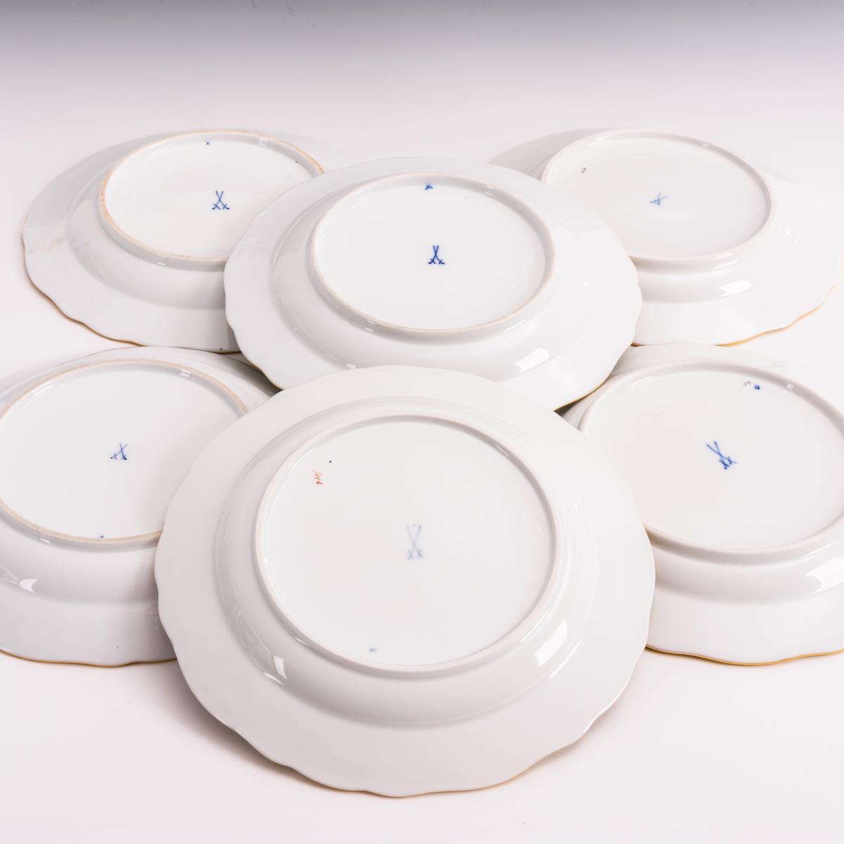 6 Teller mit Weinlaubdekor. Meissen.