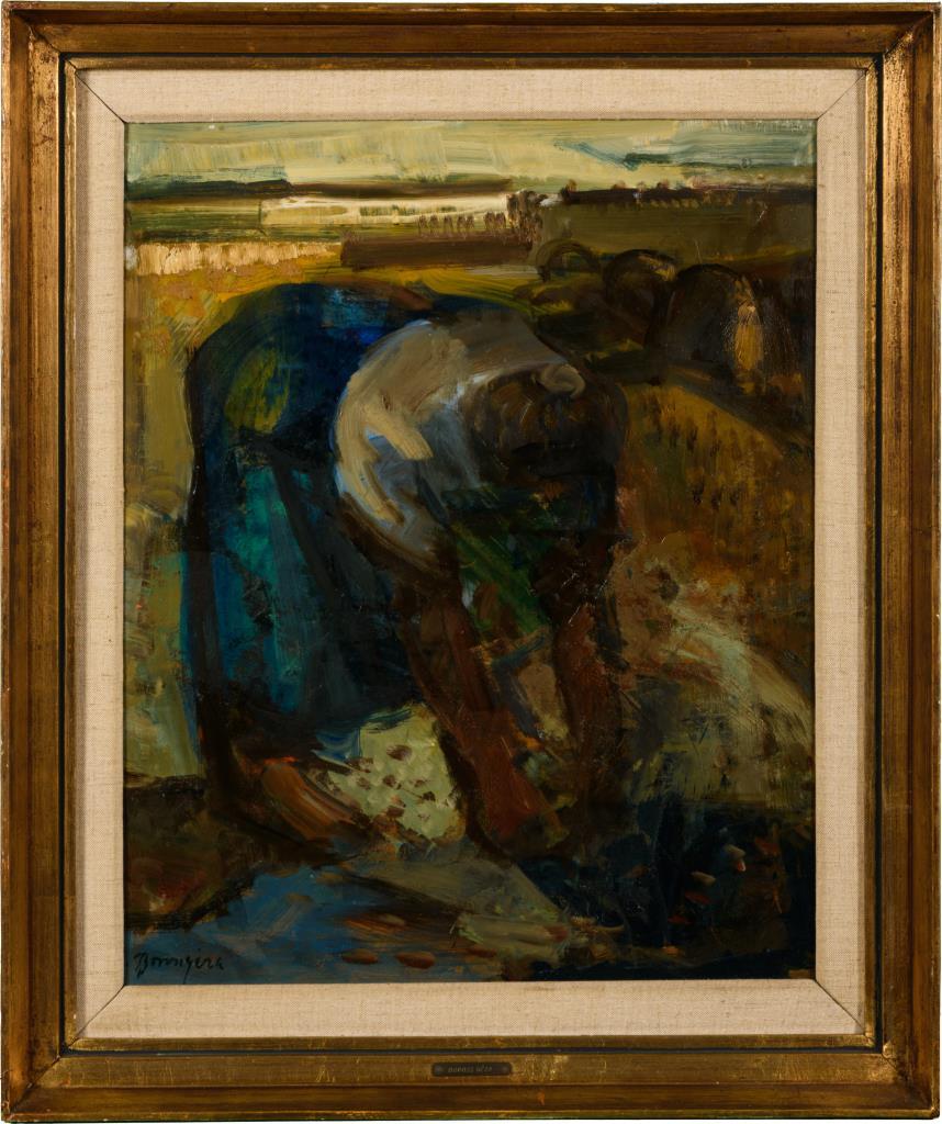 Sonnige Landschaft, Bildnis einer Bäuerin, Bäuerin bei der Feldarbeit und Blick auf eine Bauernkate.