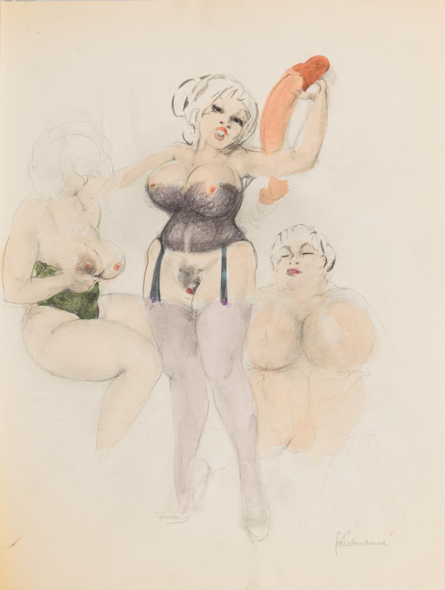 9 Zeichnungen (davon 3 koloriert). 5 x Bleistiftsignatur.