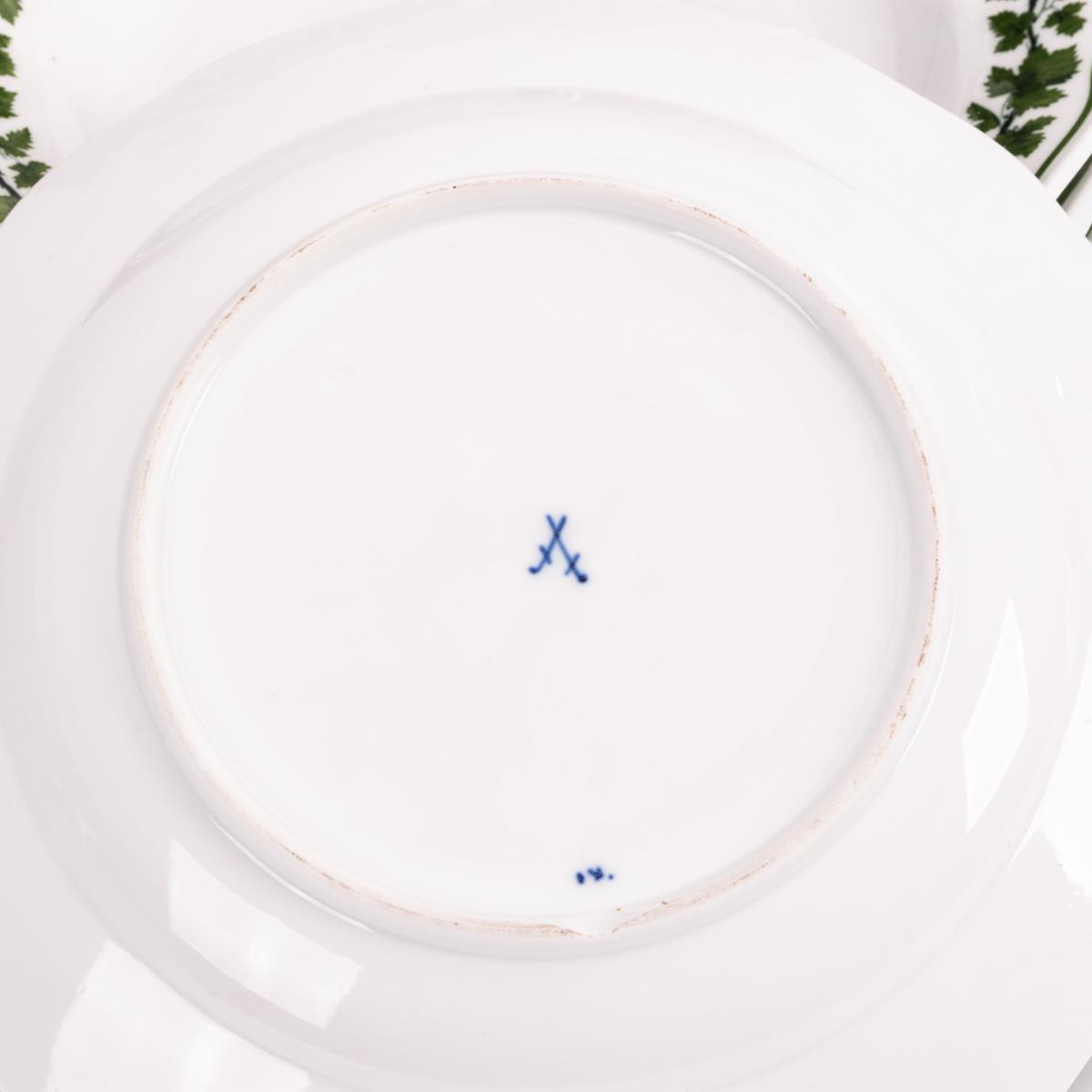 8 Speiseteller mit Weinlaubdekor. Meissen.