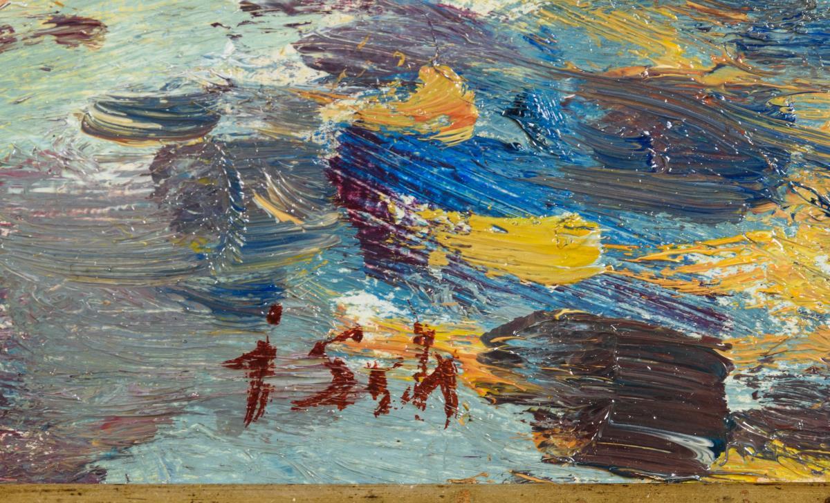 Öl/Malkarton. Rechts unten undeutlich monogrammiert, verso betitelt.