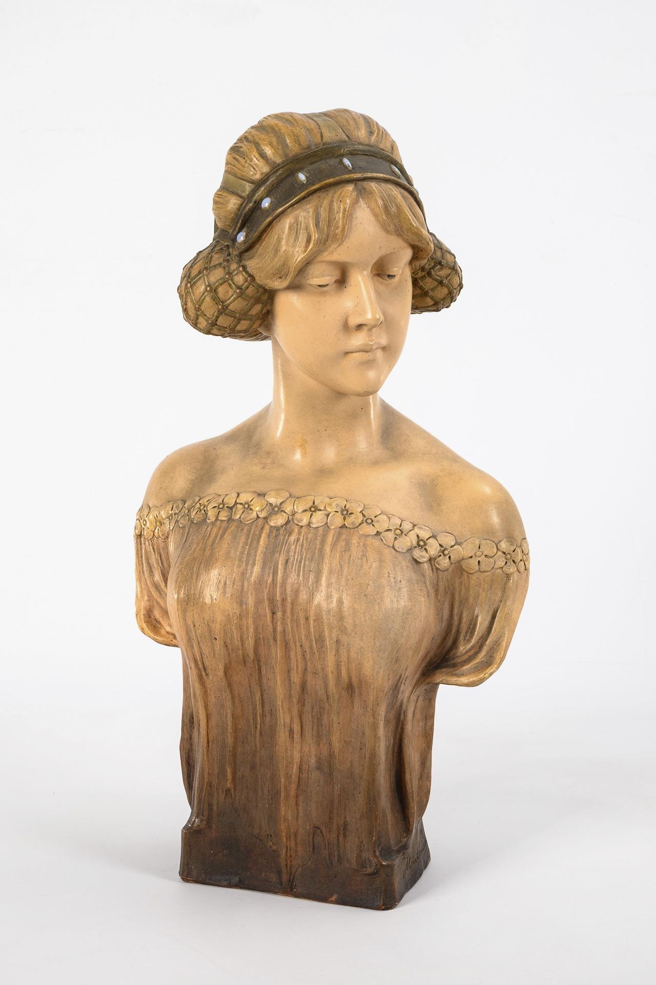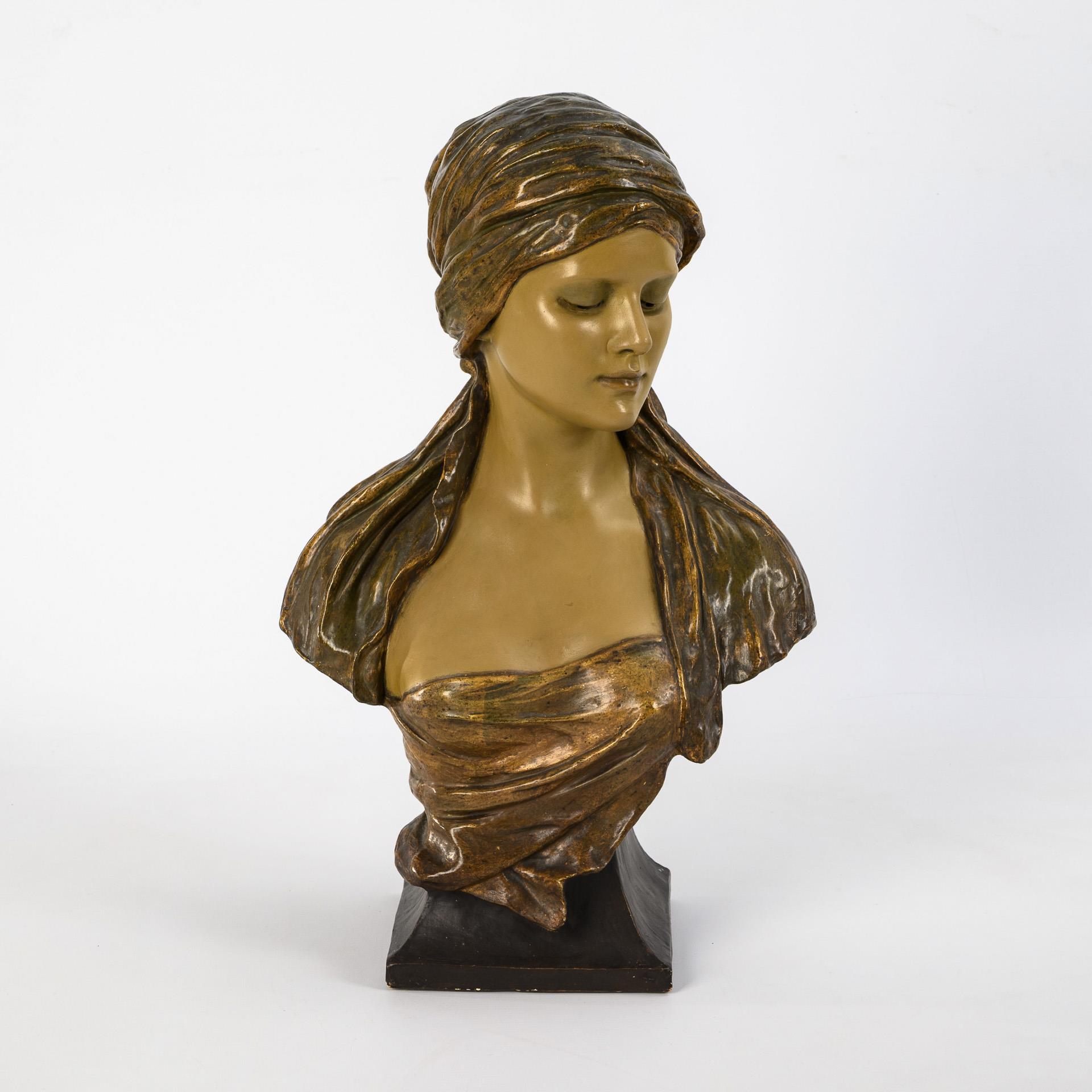 Art Nouveau terracotta bust "Bulgarian woman". Viennese manufactory Friedrich Goldscheider.