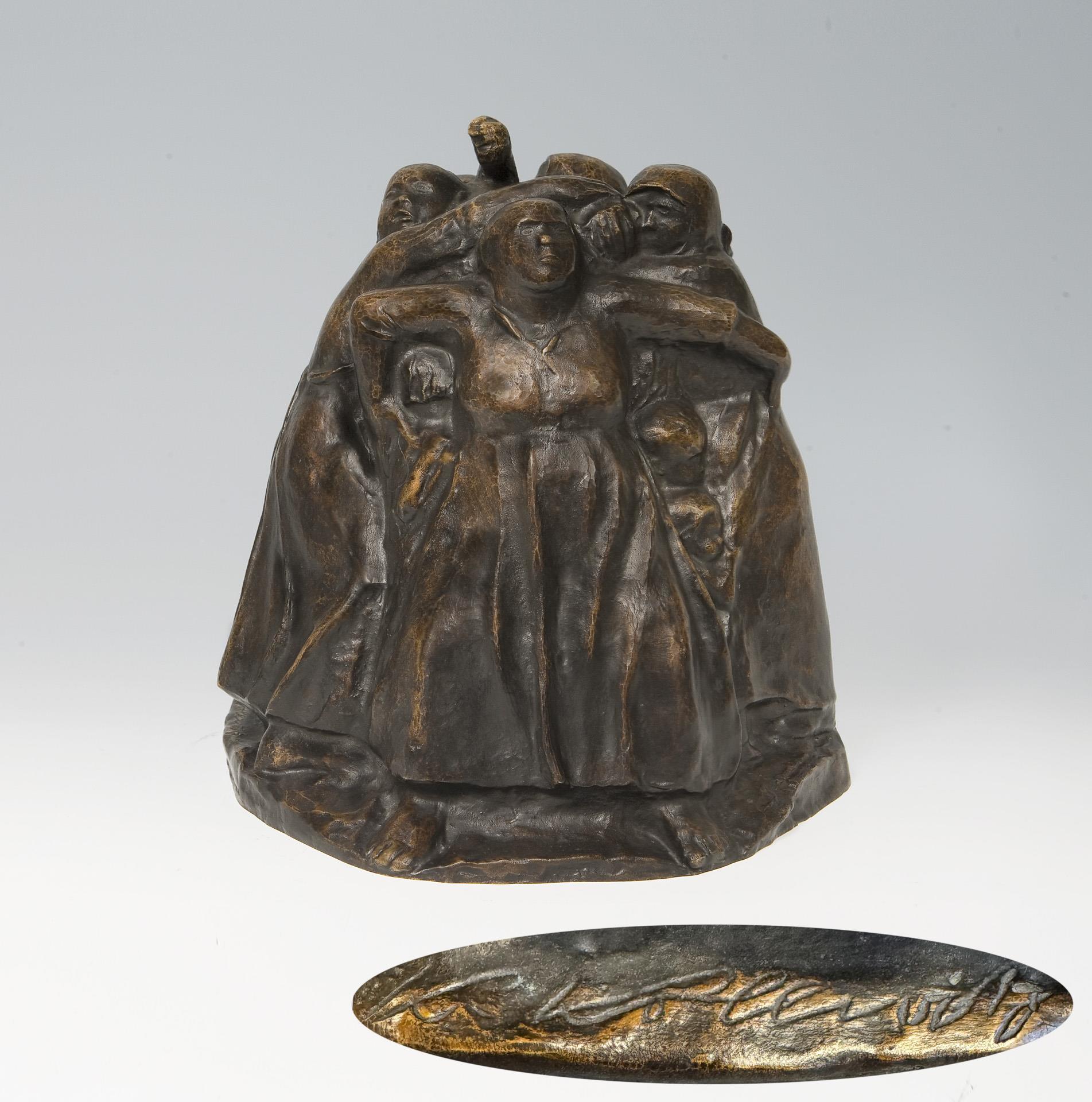 Modell-Jahr: 1938, seitlich signiert, Gießerstempel: H. Noack Berlin. Die im Kreis stehenden Mütter, die ihre Kinder verteidigen, sind als Rundplastik mit eindeutiger Vorderansicht, von der aus die Haltungen der Mütter vollständig zu erkennen sind, modelliert * Frau Dr. Annette Seeler, Autorin des Werkverzeichnisses der Plastik von Käthe Kollwitz, bestätigt nach Untersuchung des originalen Objekts und eigenhändiger Vermessung des hier beschriebenen Bronzegusses, dass es sich nach derzeitigem Kenntnisstands Ihres Erachtens um eine autorisierte posthume Wiedergabe des Modells "Turm der Mütter" handelt, das Käthe Kollwitz 1937/38 geschaffen hatte. Das Exemplar wird voraussichtlich bei der nächsten Aktualisierug in den Werkkatalog unter den Vervielfältigungen der Gruppe III.B aufgenommen werden als Abformung von der Vorlage, die in der Bildgießerei Hermann Noack, Berlin, wohl Ende der 1960er-Jahre verwendet wurde. Die oder der Meistbietende möge bitte nach dem Erwerb, vermittelt durch das Auktionshaus, Kontakt mit Frau Dr. Seeler aufnehmen, um mit ihr die Benennung des neuen Standorts abzustimmen