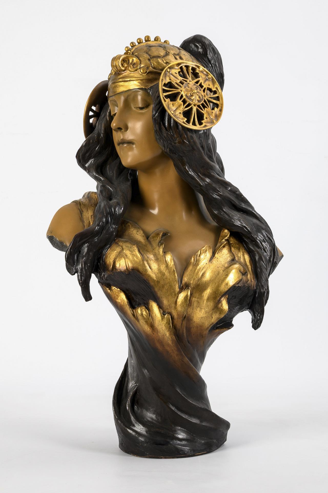 Art Nouveau terracotta bust "Theodora". Viennese manufactory Friedrich Goldscheider.