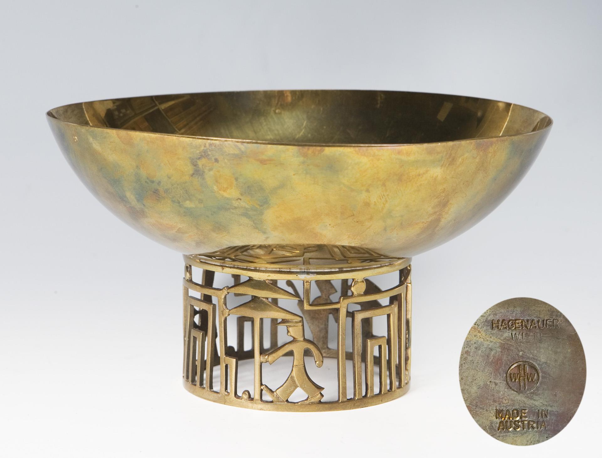 Standfuß durchbrochen gearbeitet. Firmenmarke WHW im Kreis, Wortmarke Hagenauer Wien, Made in Austria