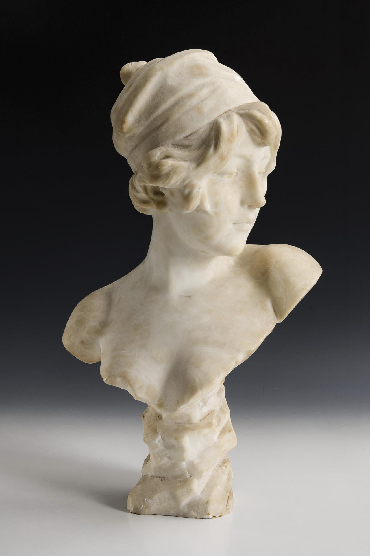 RIVIÈRE, Théodore (1857 Toulouse - 1912 Paris). Art Nouveau alabaster bust of a girl.