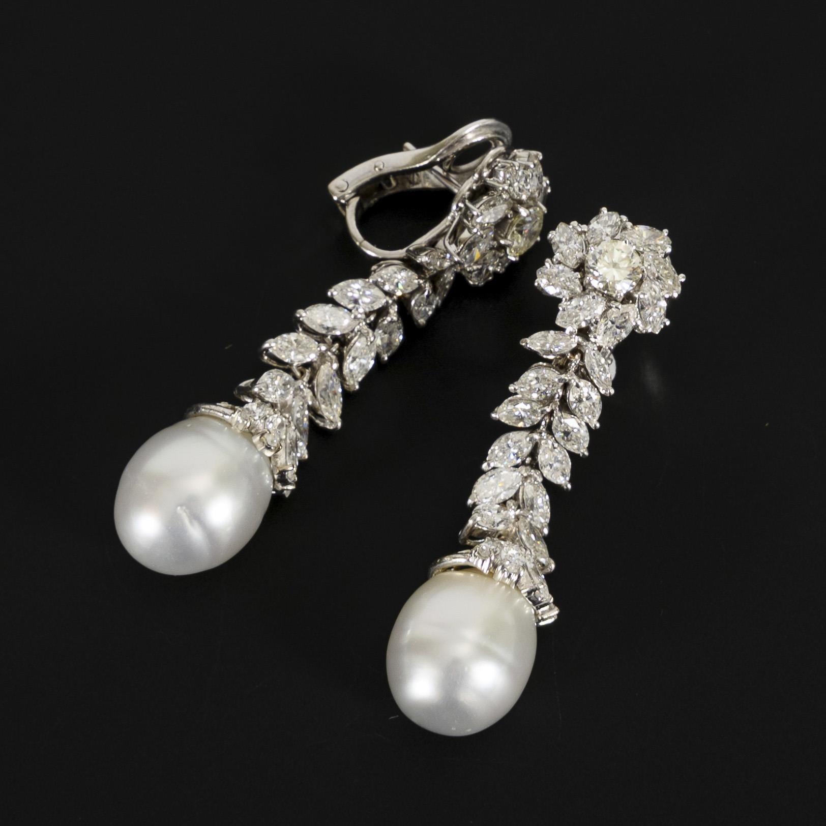 High-quality South Sea pearl earrings with diamonds and brilliant-cut diamonds.