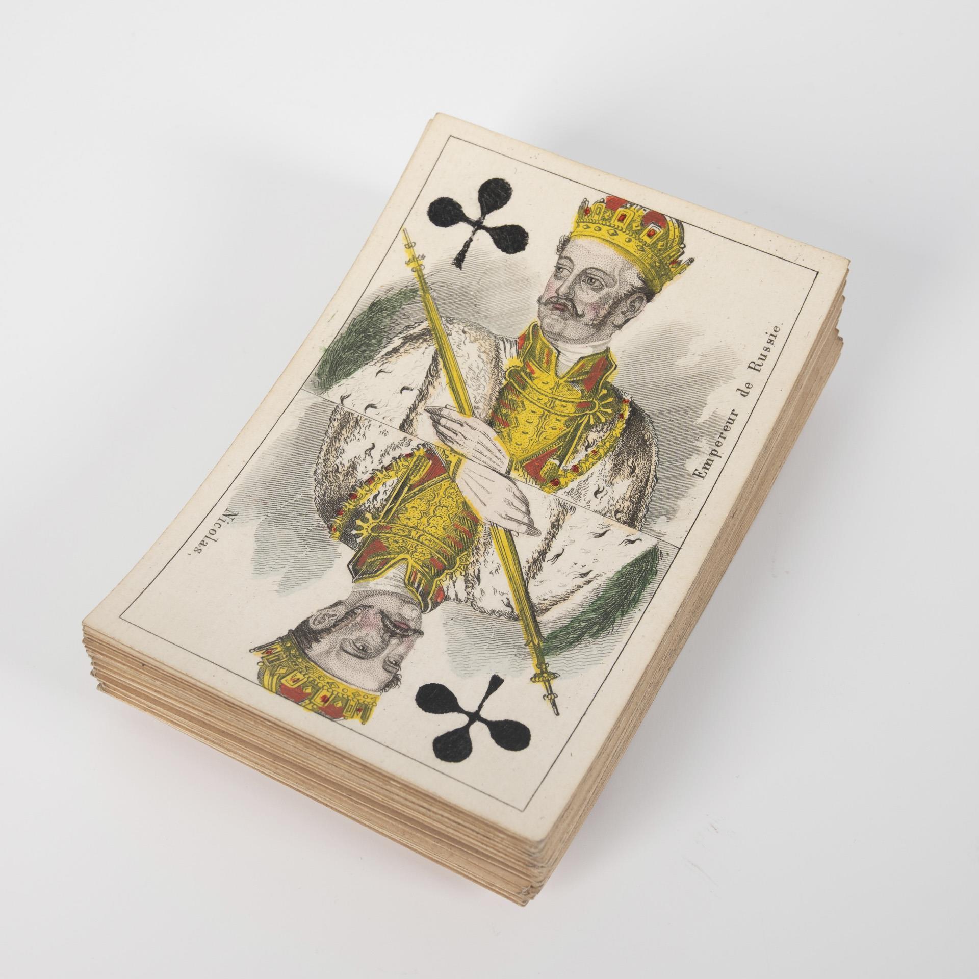 19. Museale Whist-Spielkarten zum Krim-Krieg, um 1853, Hersteller: F. A. Lattmann in Goslar. Kolorierter Stahlstich, 52 Blatt, vollständig in sehr guter Erhaltung. . Startgebot: 650 €