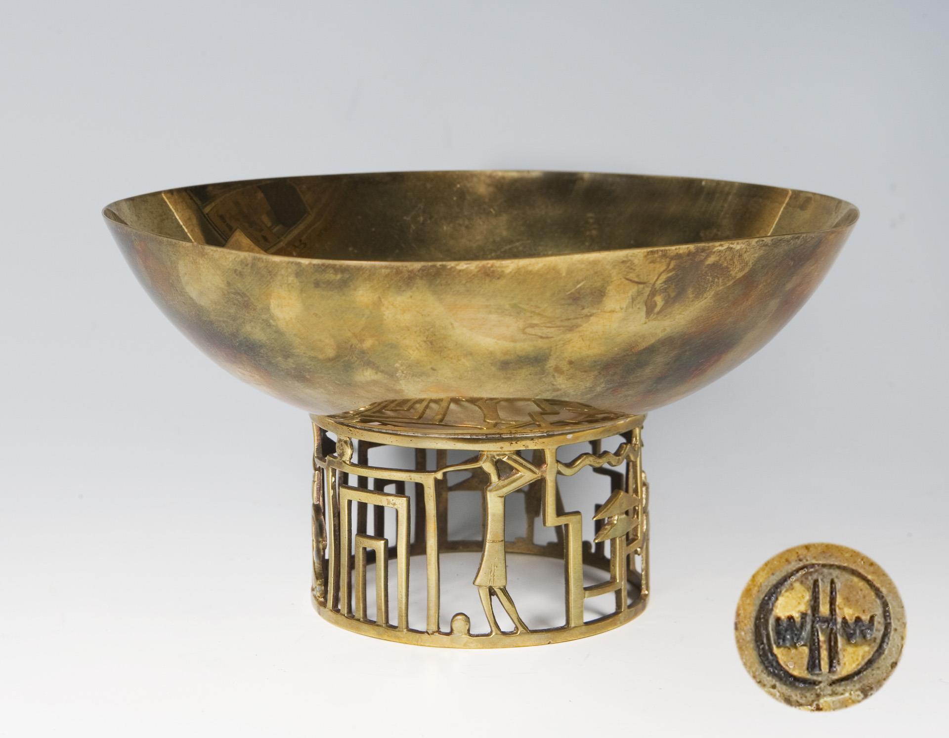 Ornamental durchbrochen gearbeitet, mit stilisiertem Vogeldekor. Wortmarke Karl Hagenauer Wien, Firmenmarke WHW im Kreis