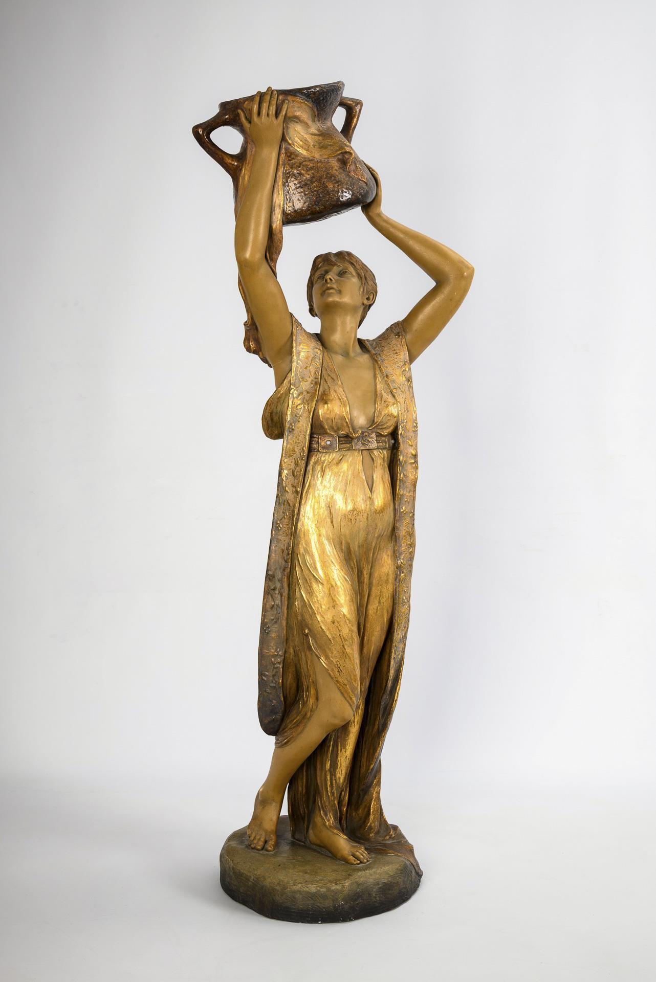 Large Art Nouveau terracotta figure "Water bearer". Viennese manufactory Friedrich Goldscheider.