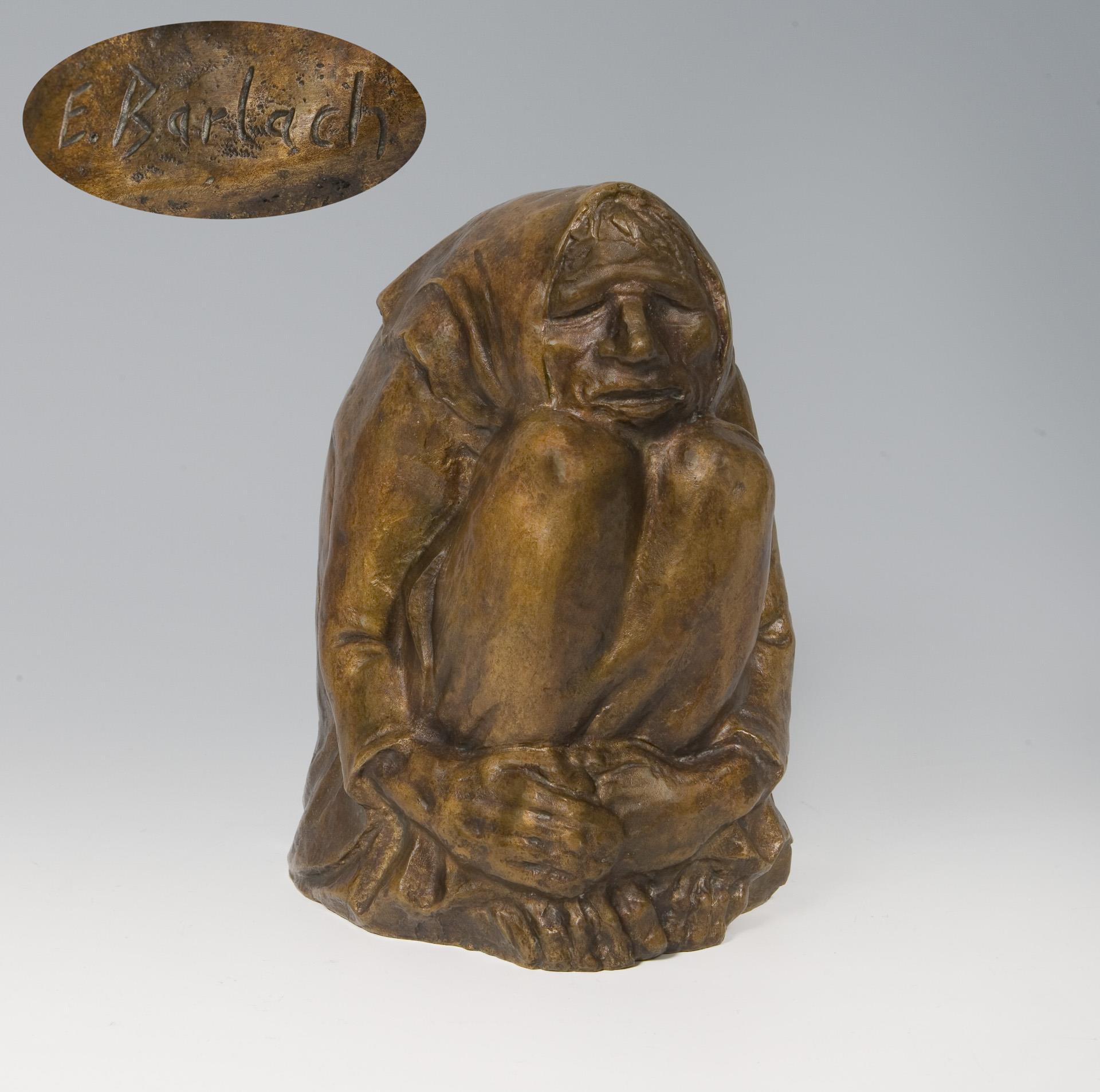 Modell-Jahr: 1937, rückseitig signiert, nummeriert: 4/10, Gießerstempel: H. Noack, Berlin. Bereits Barlachs frühe Arbeiten setzen sich mit dem Menschen, seinen Lebensbedingungen und seinen Haltungen zum Leben auseinander