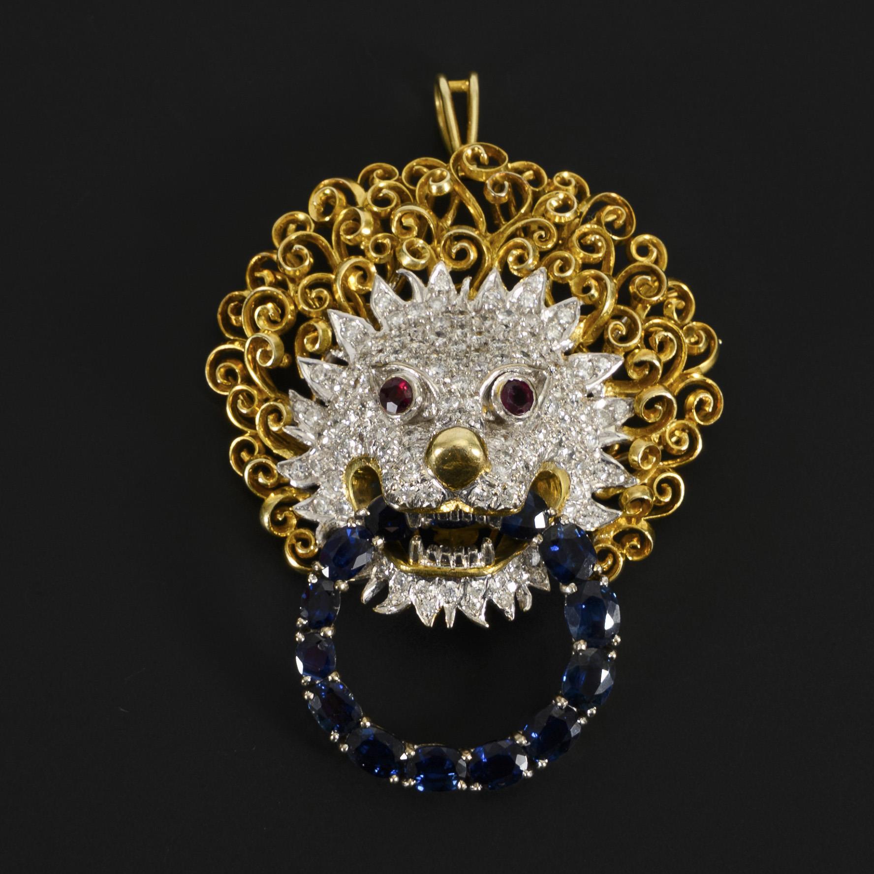 Unusual pendant brooch in the shape of a lion's head door knocker.