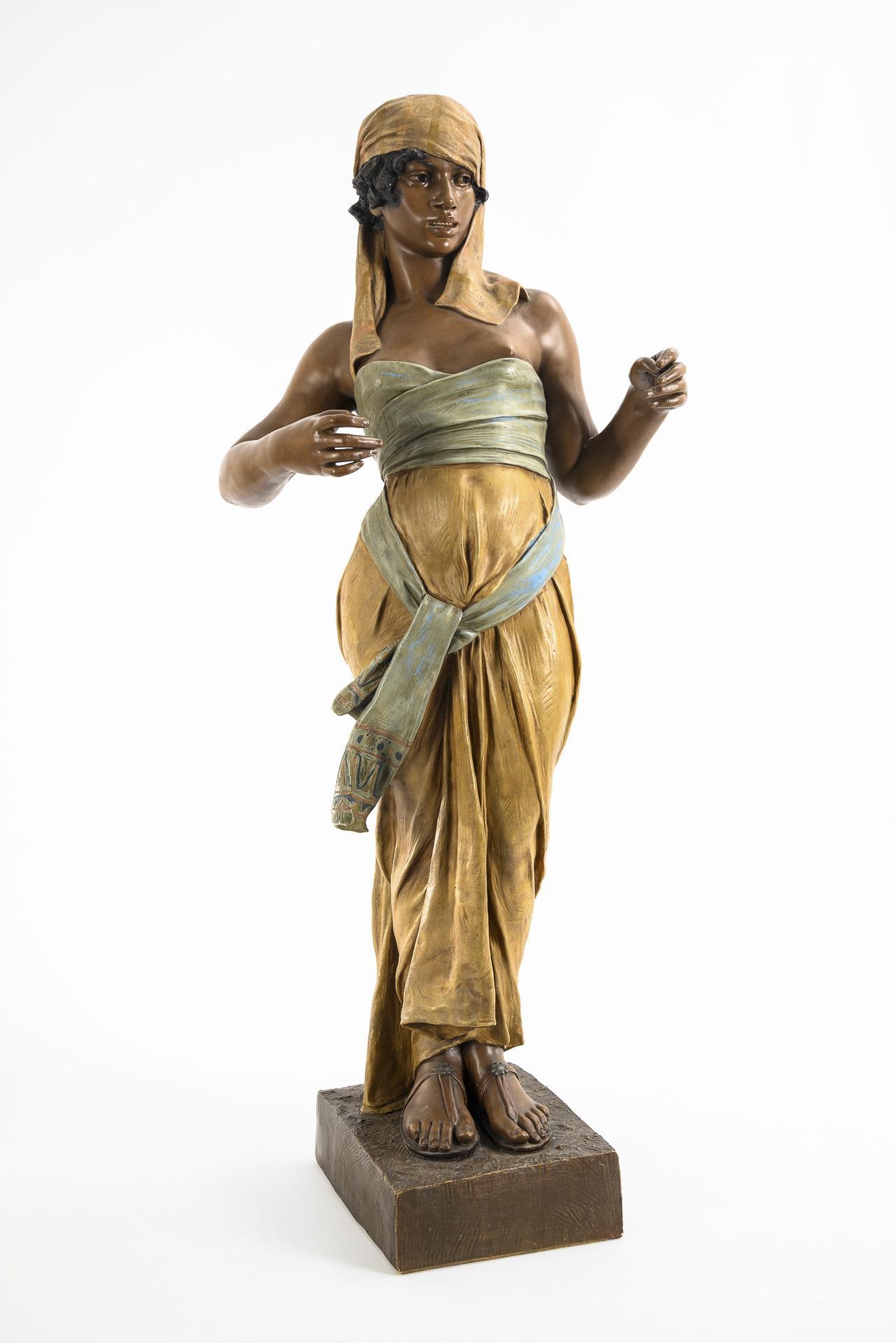 Large Art Nouveau terracotta figurine "Young Oriental Woman". Viennese manufactory Friedrich Goldscheider.